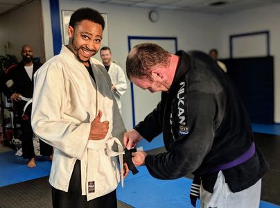 The beginner’s class focuses on self-defense but the big-picture focus is on mat work. The gi is the martial arts uniform worn during this class. The goal of Jiu-Jitsu is to make one's opponent submit by applying a chokehold or joint lock. In tournaments, one can also win by earning points for securing dominant positions on the mat.